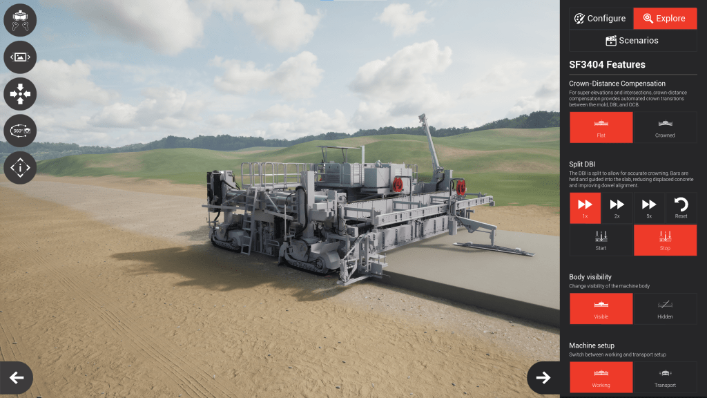The menu for controlling the scene and camera conained a predefined set of buttons that were supposed to be static. The template UI also contained three optional menus for product selection, product configuration and feature demonstration.